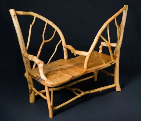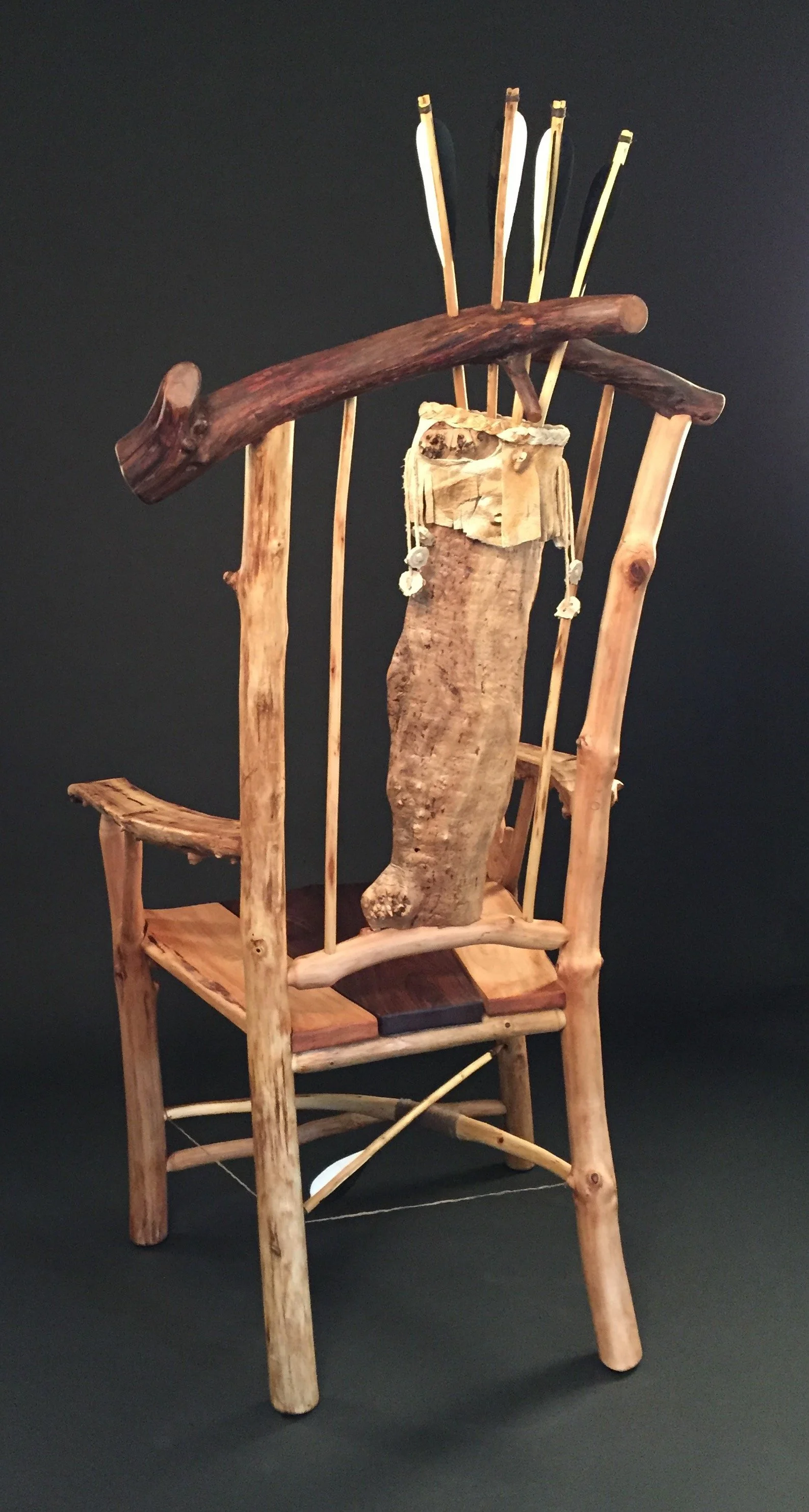 Gandalf’s Throne is a majestic, yet whimsical, creation comprised of 11 wood species including: Melaleuca, Black Walnut, Madrone, Seaside Juniper & Apricot. Included in the piece is Gandalf’s staff with his pipe nestled within. This chair promises a magical experience in Middle Earth!